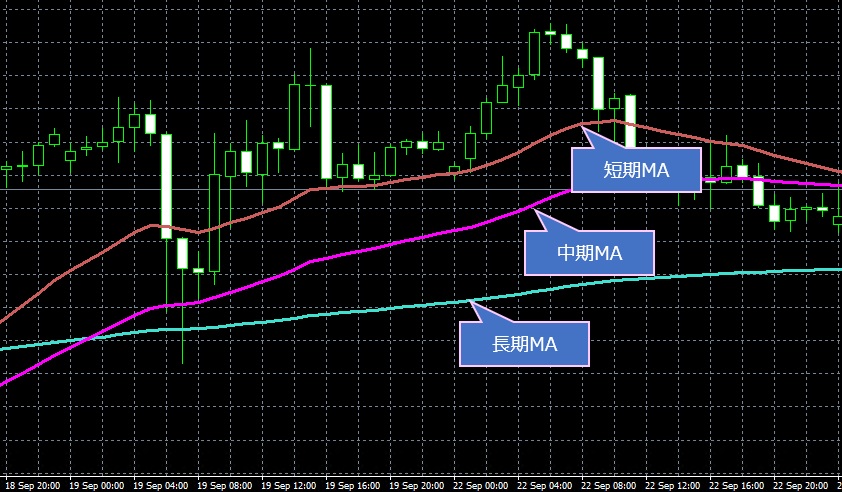 - 長期MA < 中期MA < 短期MA の場合 → 上昇トレンド