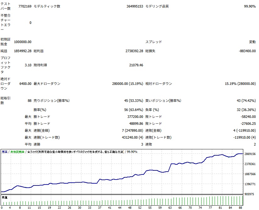 私が作成したEAを使った検証結果です。